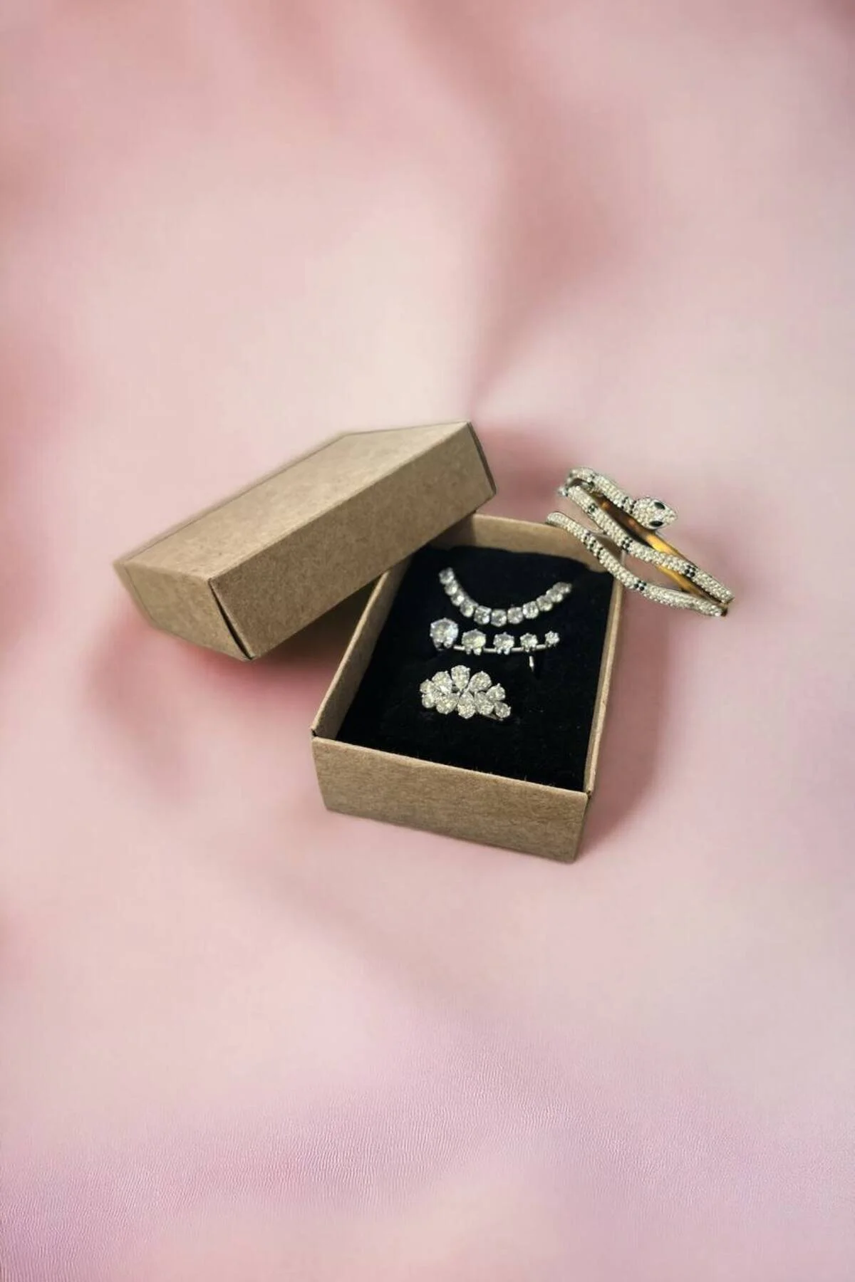 8x6x3 Cm Kraft Süngerli Kutu Bileklik, Mini Set Kutusu Demonte Sevk